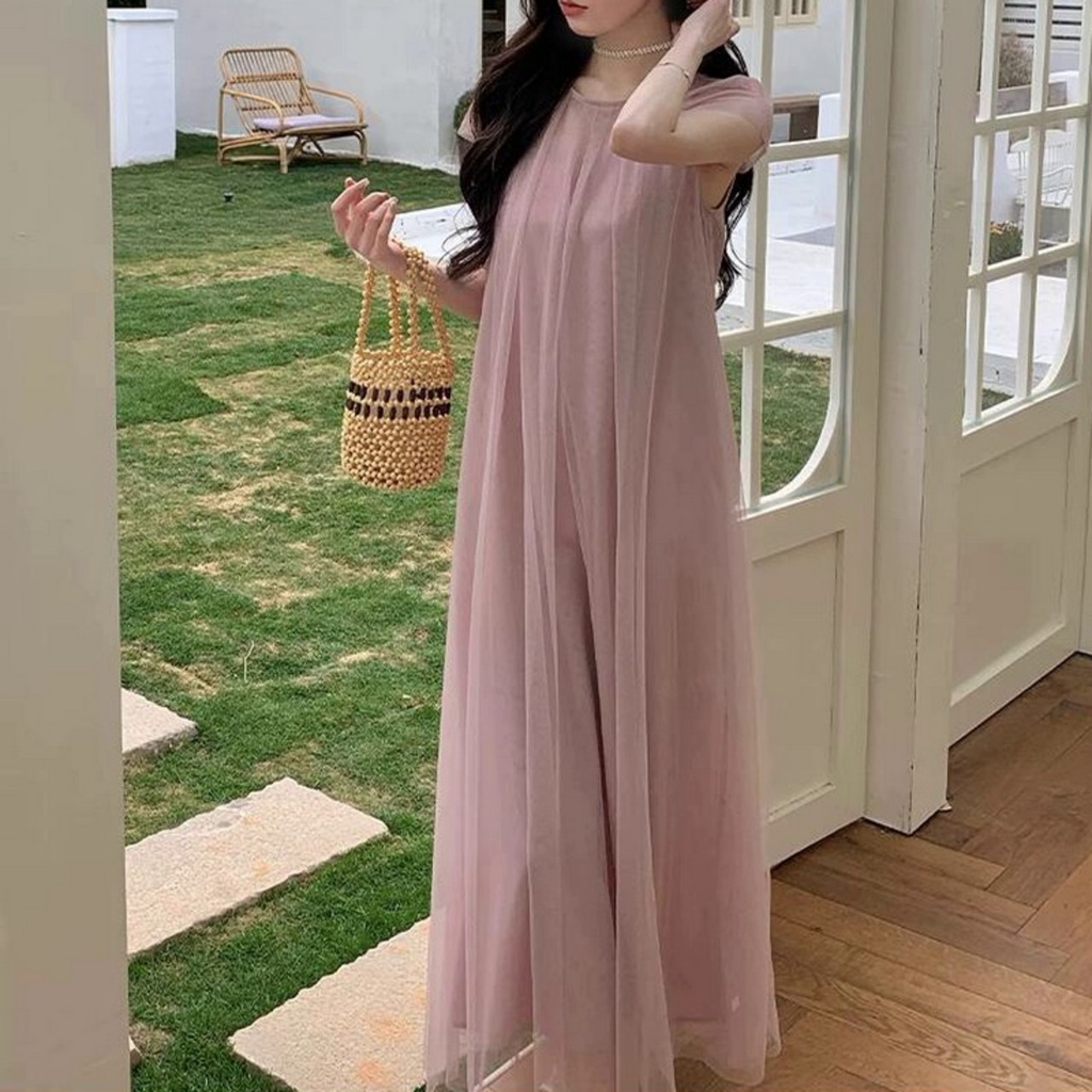 ラウンドネックロングワンピース R0440