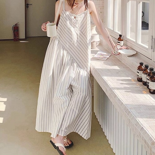 ストライプノースリーブワンピース R0429