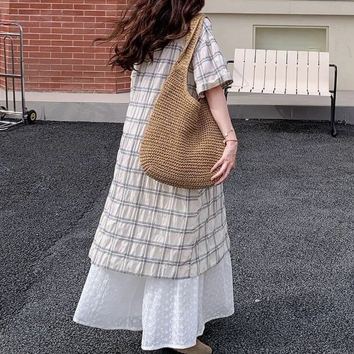 チェック柄ロングワンピース R0436