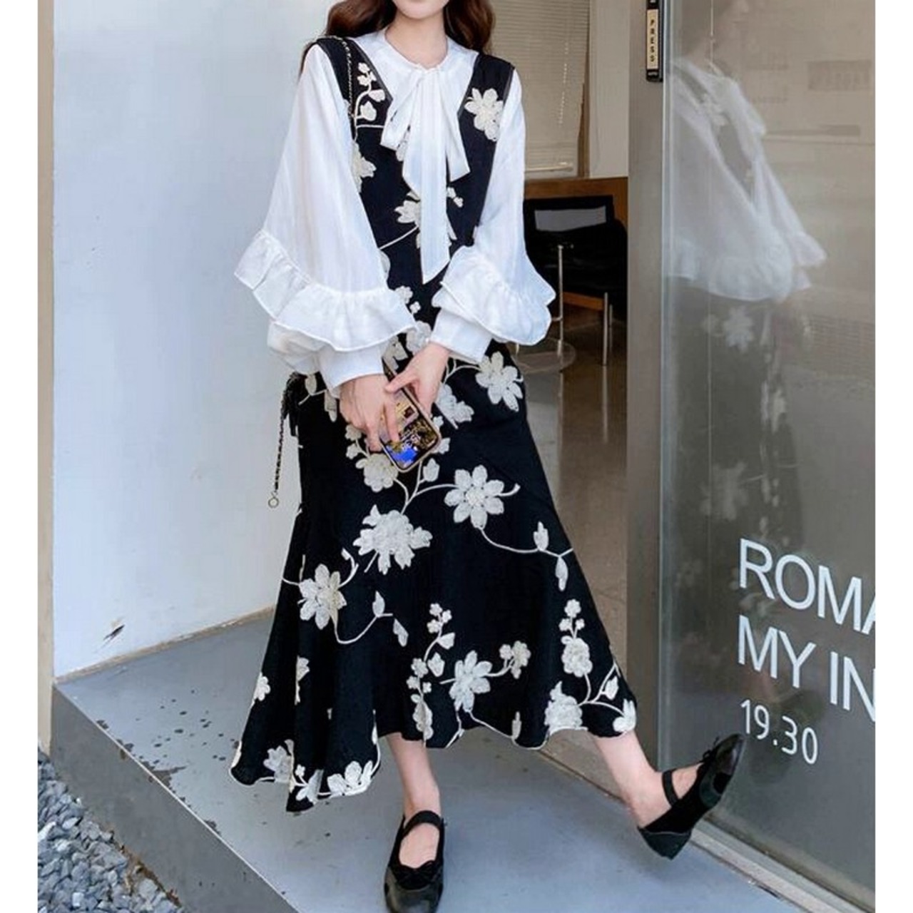 フラワーロングワンピースセットアップ R0470