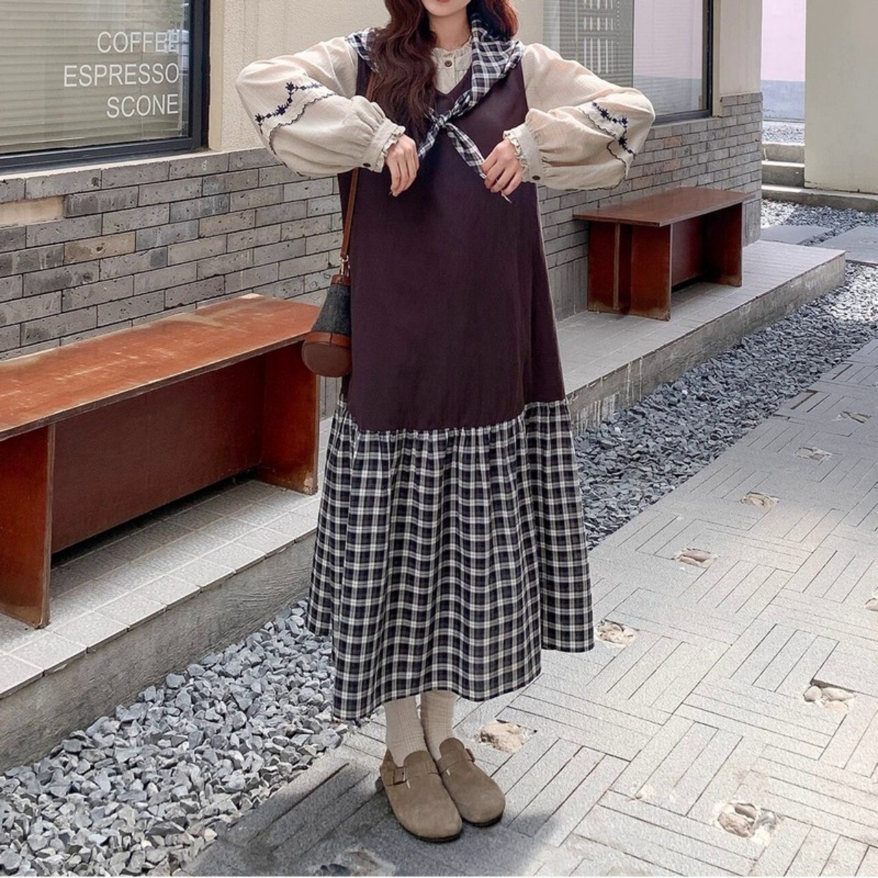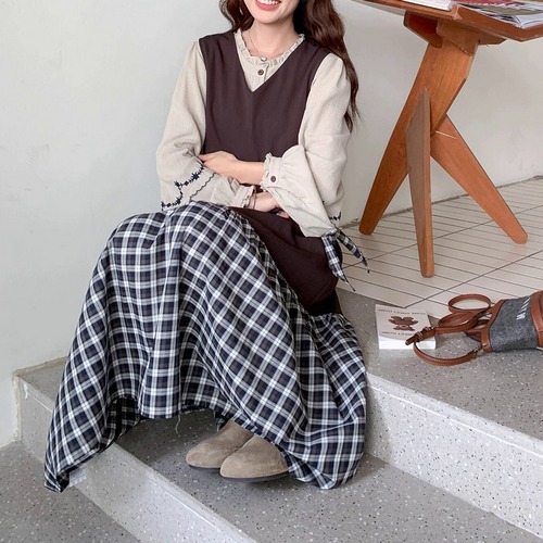 チェック柄ワンピース R0482